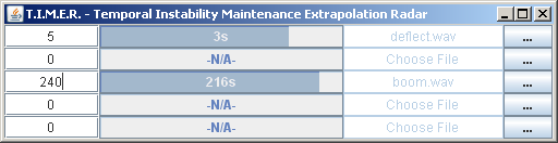 Another java utility, multi-timer allows the user to set 5 different countdown timers, and pick sound files to be played as each timer expires. Simply enter the countdown length in seconds to start a timer.