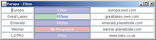 A java utility that continuously pings up to 5 servers to keep track of the internet connection speed and server accessibility. Simply enter the IP or server address, to monitor response time. Requires Windows.